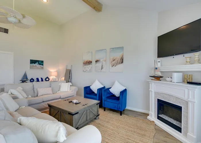 Dining at this charming townhome elevates the experience, with a fully-equipped kitchen allowing guests to prepare delightful seaside meals while enjoying the coastal breeze. The nearby local eateries offer an array of culinary delights, promising to satisfy every palate from fresh seafood to international cuisines, all just a short stroll away.
